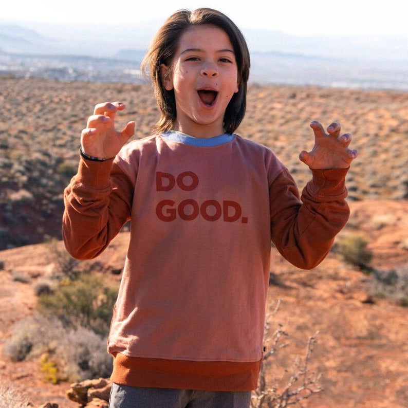 Comfortable ribbing at neck, cuff, and hem make our Do Good Kids’ Crew Sweatshirt extra cozy, while cover stitching at the arm holes and shoulder seam add a vintage touch. This style is unisex.