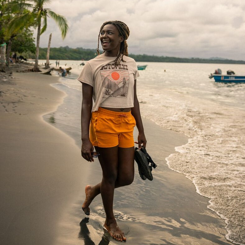 The Western Hills crop is softer on your skin and softer on our planet with an organic cotton recycled polyester fabric blend.